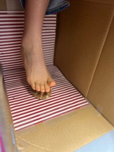 バレエではとても大事な足を使って、箱の中身を当てるゲームをしました。