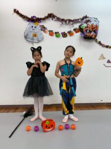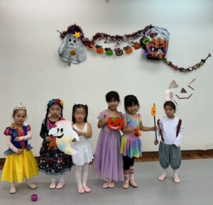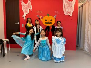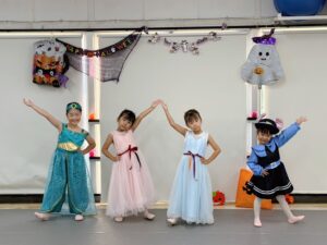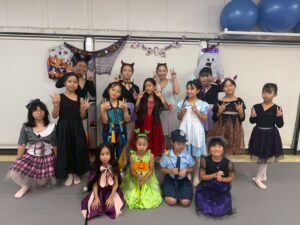 2025年 ブログ ハロウィンレッスン 今年も「ハロウィンレッスン」と題して、生徒たちが思い思いの仮装をして楽しくレッスンを行いました♪ プリンセスや魔法使い、カボチャや猫など、個性あふれる可愛い姿にスタジオ中が笑顔でいっぱいになりました♪ 当日は保護者の皆さまにも見学していただき、普段のレッスンとは一味違う、楽しい雰囲気を過ごすことができました。 インスタグラムにもお写真を掲載しておりますので、ぜひそちらもご覧ください。 https://www.instagram.com/emi_ballet_class/