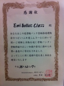 NPO特定非営利活動法人 命のつどい より感謝状をいただきました。