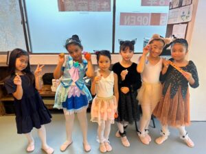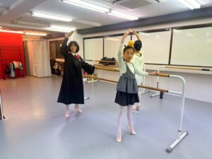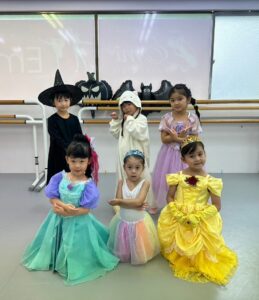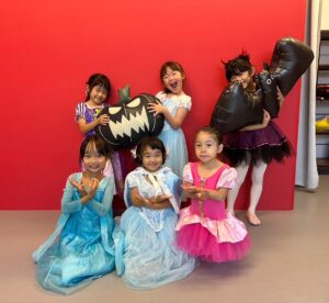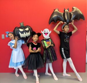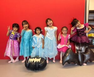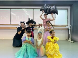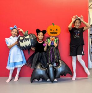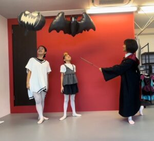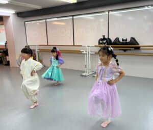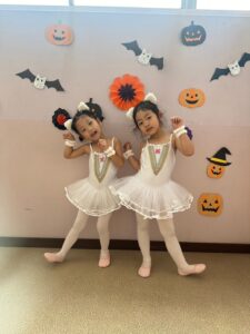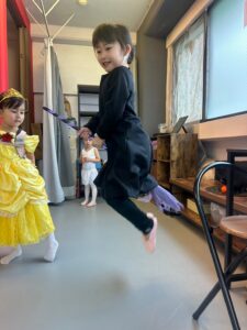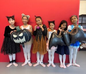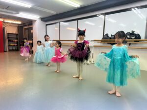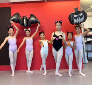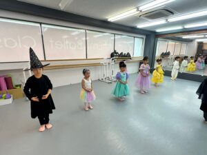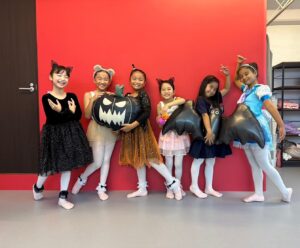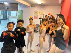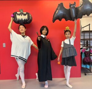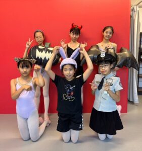 2024年 ブログ 24ハロウィンレッスン②三鷹クラス 三鷹クラスでも、仮装をしてハロウィンレッスンを行いました。 三鷹クラスでも魔女のジャンプに挑戦しました。なかなか成功せず難しかったですが、高いジャンプとタイミングを揃える良い練習になりました。 みんな素敵な仮装で楽しくレッスン出来ましたね♪